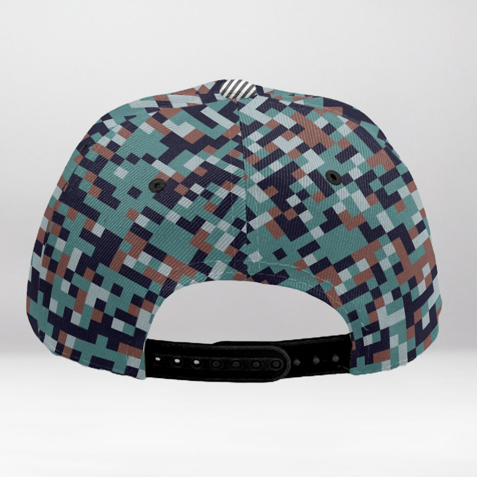 "pixel camo snapback hat," "astronaut embroidered hat," "gamer streetwear cap," "digital print camo cap," "HatsRx glitch drip hat," "futuristic snapback for creatives"